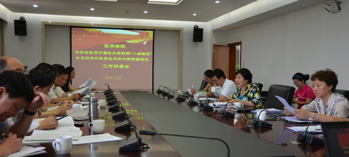 为认真落实《中共云南省委高校工委 云南省教育厅关于规范高校“三重一大”事项决策制度的实施意见(试行)等八个制度文件的通知》和《昆明市财政局关于贯彻落实行政事业单位内部控制规范(试行)的通知》文件精神,进一步强化内控规范管理和权力运行制约,推进德赢官网廉政风险防控机制建设和内控制度建设,学校于5月23日下午在办公楼411会议室召开德赢VWIN官方网站贯彻落实云南省教育厅廉政风险防控“八项制度”和昆明市行政事业单位内部控制规范工作部署会。学校党委副书记、纪委书记李媛芬,党办、纪委办(监审处)、组织部、校办、人事处、计财处、教务处、科研处、学生处、招就处、资产处、基建处、后勤集团部门主要负责人及纪委办(监审处)、计财处科级干部参加了会议。