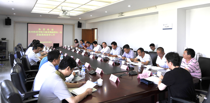 座谈会上,蒋永文校长首先代表学校欢迎令狐荣锋副校长一行到德赢VWIN官方网站考察交流,并向来宾介绍了学校近几年来的建设发展情况。双方领导介绍学校基本情况后,贵州师范学院就如何进一步做好本科教学合格评估与建设、学分制管理和后勤管理等工作,在会上与德赢官网领导和对口院系负责人进行探讨和交流。