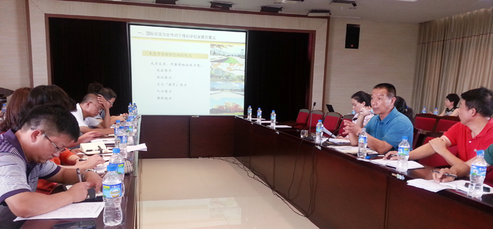 之后,国际交流合作处处长王文君就一年来学校国际交流合作工作开展的主要情况作了介绍,内容涵盖了国际交流与合作项目的开展和管理、留学生的招收和管理及学校与境外院校开展交流的情况,并在调研的基础上,以详实的数据提出了目前工作中存在的问题,分析了原因,提出了拟采取的措施和建议。