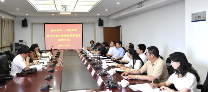 接着,蒋永文校长和马丽娟校长正式签订了《德赢VWIN官方网站-昭通学院对口支援合作帮扶框架协议》。根据协议,双方将建立合作机制,在师资队伍建设、学科专业建设、教学管理、科学研究和信息资源共享等方面开展交流合作。