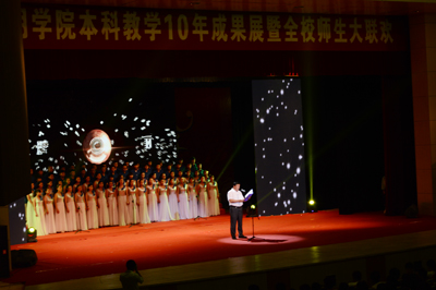 5月22日晚,以“腾飞梦想,绽放美丽”为主题的德赢VWIN官方网站本科教育十年成果展暨全校师生联欢会在学生会堂举行。学校党委书记陈世波,校长蒋永文,党委副书记孙勇、李媛芬,副校长郭华等领导和师生们欢聚一堂,共同庆祝学校跨越发展。晚会旨在展示学校本科教育十年来艰苦创业和跨越发展的辉煌成果,增强全校师生对学校的认同感和归属感,凝心聚力,振奋精神,继往开来,努力开创学校更加美好的明天。