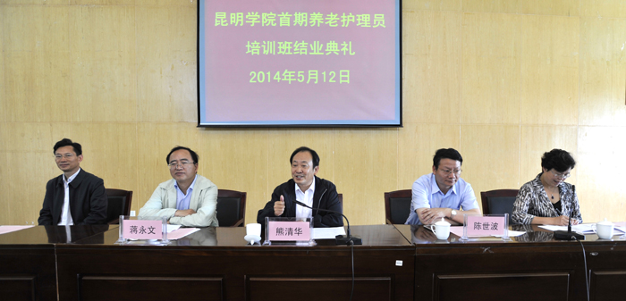 5月12日,云南省商务厅党组书记、厅长熊清华到德赢官网看望由商务厅安排专项资金,德赢官网承办的首期云南省养老护理员培训学员并出席学员结业仪式。