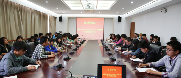 3月28日下午的学生代表座谈会由团委副书记樊传章主持。学生代表们一致认为,社会主义核心价值观的培育贵在知行合一,知是基础,行是关键。表示将在未来的学习生活中秉承“明德至善、知行利物”的校训,遵循“爱国、敬业、诚信、友善”的基本道德规范,从小事做起,从身边做起,做到遵纪守法、讲求诚信、自强不息、奋发向上,努力学习,规范文明行为,不断完善自己,努力成为促进和谐、倡导新风的楷模,把社会主义核心价值观内化为自觉行动。