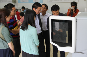 校党委陈世波书记热情接待了到访来宾。在向来宾详细介绍了近年来学校校园基本建设、应用型人才培养、学科专业建设,服务地方经济社会发展和毕业生就业工作等办学情况后,陪同冯世军总经理一行参观考察了自机学院、农学院、医学院实验室和校园建设。