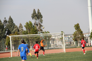 学校师生热情欣赏双方精彩的球技表演,掌声阵阵,喝彩不断。