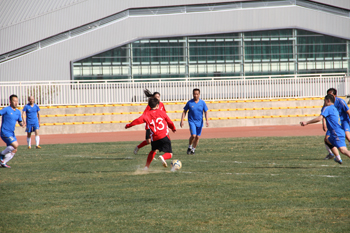 3月10日下午,山东鲁能女子足球队在获得2014年中国足协杯第四名,即将争夺第三名之际,应邀到德赢官网同德赢官网教职工男子足球队举行友谊赛。