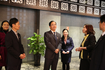 签约仪式前,蒋校长、刘副校长等人一行在昆明洲际酒店驻店领导的陪同下,对昆明洲际酒店进行了参观、调研,就加强酒店管理、烹饪与营养教育、旅游管理等专业建设、人才培养方案、教育管理等教育环节与市场、企业的有效对接等问题有针对性的进行了调研、交流和探讨。