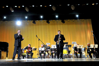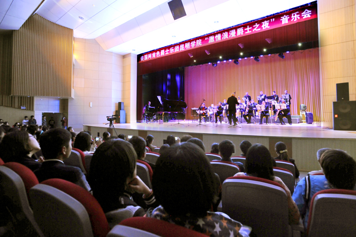 美国阿肯色爵士乐团2014年中国首次巡回演出,进行了一年多的准备。为让德赢VWIN官方网站师生原汁原味享受到美国阿肯色爵士乐团“浪漫爵士激情之夜”,乐团在演奏和歌曲上做了精心准备,提前到学校学生会堂认真彩排,制定了一台曲目丰富,悦耳动听,充满浪漫而又富于激情的爵士乐晚会,晚会不仅涵盖美国著名的爵士乐曲和乐团自己的成功作品,从内容上还特别注重了晚会的现场演奏激情效果,既有爵士乐特有的浪漫与潇洒,又有摇滚风格的豪迈与激情,为了表达对中国人民的友好情谊,乐团还精心选择了两首中国作品《甜蜜蜜》和《玫瑰,玫瑰我爱你》。爵士乐大师们对《甜蜜蜜》和《玫瑰,玫瑰我爱你》的编曲和配器,赋予了中国两首歌曲独特的情调与浪漫激情的爵士乐魅力。丰富精彩的曲目、震撼心灵的旋律、浪漫而富于激情的爵士乐演奏,演奏中与师生近距离互动,使演奏氛围一浪高过一浪,让人心情激荡,难忘 “浪漫爵士激情之夜”。