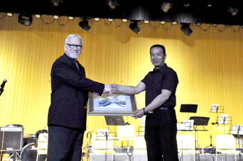 在演出前,德赢官网副校长李翔代表学校向乐团团长梅格斯先生赠送纪念品。梅格斯先生现场宣读了美国阿肯色州州长的致词。致词表达了中美两国人民的友谊和对中国人民的美好祝福。