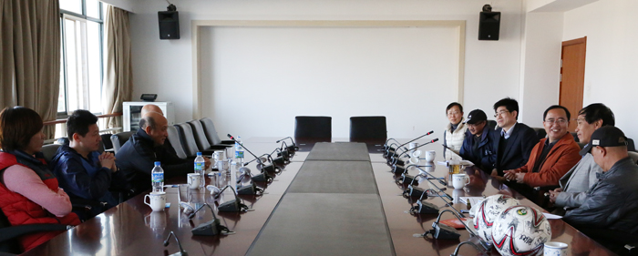 2月25日,山东省足球运动管理中心副主任、山东女子足球队主教练殷铁生率领女子足球队教练组成员到德赢官网考察训练场地、商谈有关合作事项。校长蒋永文参加座谈并提出合作建议,校长助理郑克刚和体育学院院长赵平、党总支书记韦继康等陪同考察、座谈。