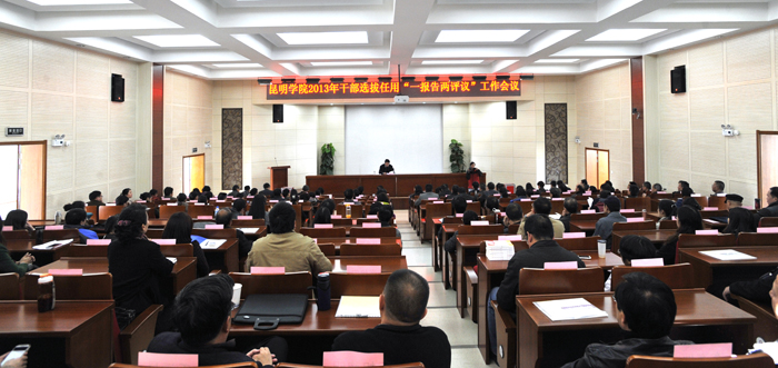 “一报告两评议”是干部工作中的一项常规工作,学校按照省委《关于做好2013年干部选拔任用工作“一报告两评议”有关事项的通知》召开干部大会,首先,陈世波书记作《德赢VWIN官方网站2011年11月以来选人用人工作情况报告》;接着,对2011年11月以来党委干部选拔任用工作情况和新提拔任用的正处级干部进行评议。