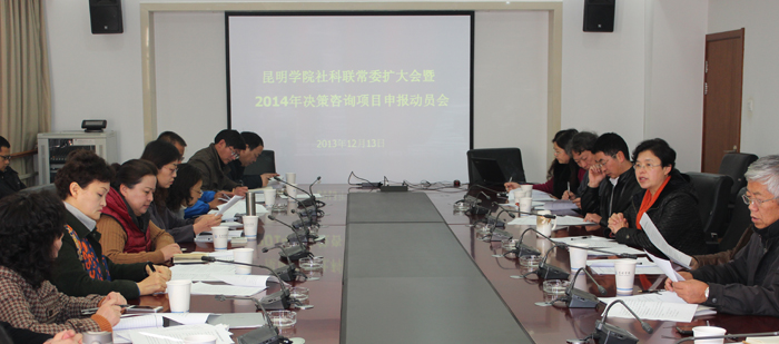为不断提高德赢官网教师服务地方经济社会发展的能力,12月13日上午熊晶副校长主持召开了学校社科联常委扩大会议暨2014年昆明市决策咨询项目申报动员会。德赢VWIN官方网站社科联常委、相关院系主要领导、分管科研领导以及研究基础较为扎实的教师参加会议。