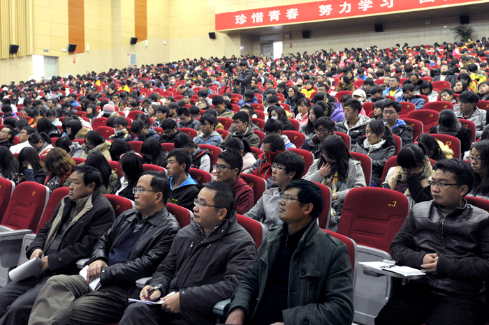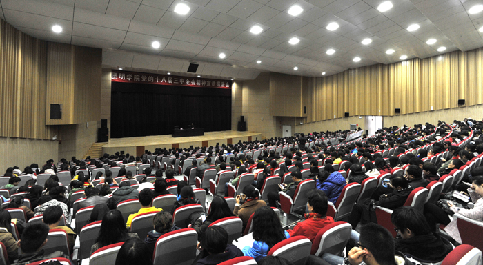 12月20日下午,德赢VWIN官方网站在学生会堂举行党的十八届三中全会精神宣讲报告会。省委十八大精神宣讲团成员、省委高校工委十八届三中全会精神宣讲团成员、云南大学副校长杨泽宇教授做了专题报告。学校校长蒋永文、党委副书记孙勇、各党总支副书记、管理服务部门教职工党员、各院系师生党员代表共1200多人聆听了报告。报告会由孙勇副书记主持。