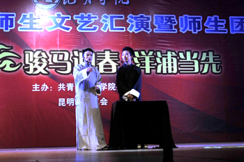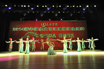 为迎接2014年新年的到来,丰富校园文化生活,展现师生风采,凝聚爱校精神,执此辞旧迎新之际,由学校团委、学校工会联合主办的“骏马迎春,洋浦当先”新年师生文艺汇演暨师生团拜活动于12月27日在学生会堂隆重举行。学校校长蒋永文,党委副书记孙勇、李媛芬,副校长李翔、熊晶、刘海发、董建华,校长助理郑克刚,学校全体中层干部、各院系团总支书记、全体辅导员、各院系师生代表1500余人参加了本次活动。