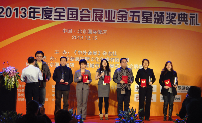 2013年12月,EPFIC 2013 -- 第三届中外会展项目合作洽谈会在北京国际饭店举行,各国驻华使馆、商会、贸易促进局、国内外会议展览活动的政府管理职能部门和机构参加了此盛会。旅游学院田芙蓉副院长、会展教研室主任刘红老师、办公室主任刘艳萍老师参加了会议。会上同期举行了2013年度会展业金五星颁奖典礼。此次会议设立了“优秀会展城市奖”、“最具潜力会展城市奖”、“ 优秀会展教育机构奖”等15个奖项,德赢官网旅游学院荣获“2013 金五星——优秀会展教育机构奖”,全国院校只有6所院校获此殊荣。