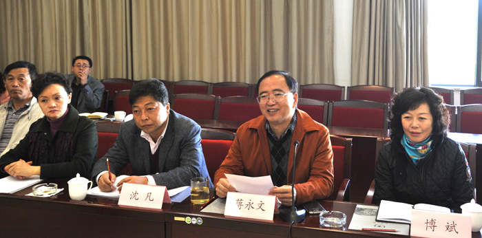 德赢官网校长蒋永文率教务处、经济学院、教师教育学院、社会管理学院、化学科学与技术系、数学系、物理科学与技术系、人文学院、外国语学院、信息技术学院、体育学院、美术与艺术设计学院、音乐学院、现代教育技术中心等部门负责人在办公楼502会议室与来宾进行交流座谈。
