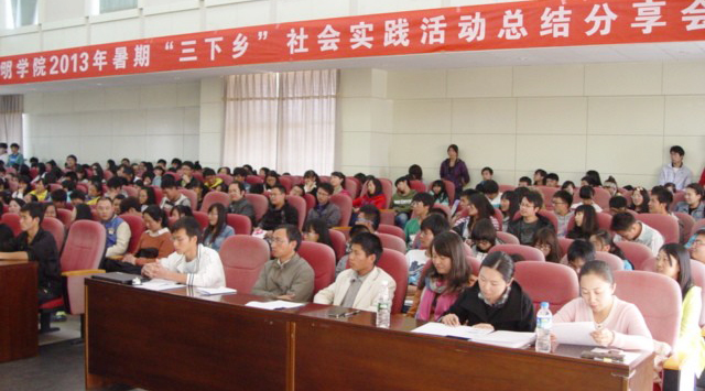 11月22日中午,校团委在惟行楼1501报告厅举行了2013年暑期“三下乡”社会实践活动总结分享会。学校党委副书记李媛芬,机关党总支书记周德钦,党委宣传部主持工作的副部长董学荣,学生处处长刘宜萍,教务处处长沈凡,校团委副书记樊传章以及各院系团总支书记,团委、学生会、社团联合会学生代表和各院系学生代表。共200余人参加了本次分享会。会议由团委书记何昊宸主持。
