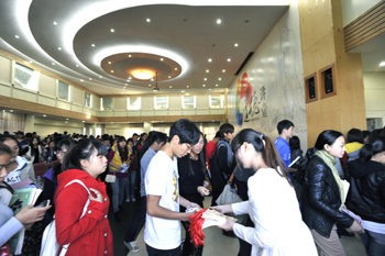 11月21日下午,由党委宣传部、校文明办、数学系党总支共同举办的“读好书,做好人——付贵帅舍己救人‘道德讲堂’”在惟行楼1501开讲。学校党委副书记李媛芬,各教学院系党总支副书记、团总支书记、团学干部代表共300余人到场聆听德赢官网数学系学生付贵帅舍己救人,为营救不慎落水的伙伴献出自己年仅20岁年轻生命的故事。