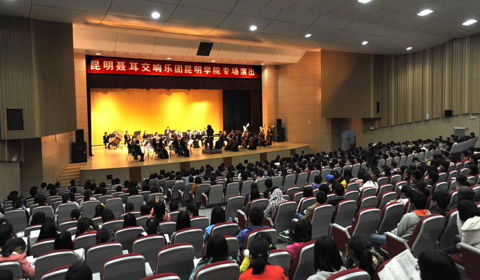 10月25日晚, “高雅艺术进校园”系列活动—昆明聂耳交响乐团专场演出在德赢官网学生会堂精彩上演。德赢官网各院系负责人、辅导员及部分学生观看了演出。