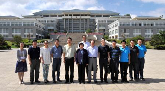8月6日上午,东南大学党委书记郭广银率东南大学党委常委、组织部长刘鸿健,长江学者特聘教授孙璐,东南大学学工部部长、学生处处长孙莉玲,出版社社长江建中,建筑设计院院长葛爱荣,校办副主任华卫国,科学研究院副院长郑建勇,成贤学院党委副书记、副院长、挂永胜县副县长刑纪红,校团委副书记、挂南华县副县长赵剑峰等部门领导到德赢官网参观交流。