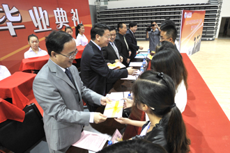 随后,在欢快的音乐与热烈的掌声中,蒋永文校长分别为2013届本、专科毕业生代表颁发毕业证书,并为获学士学位的毕业生拨流苏授学位、颁发学位证书。蒋校长身着大红色校长袍站立,毕业生身着学位袍、头顶四方帽一一向校长鞠躬,从校长手中领过学位证书,并与校长合影留念,定格下在校最后一刻美好回忆。当同学四方帽上的流苏被校长亲手从右拨到左边的那一刻起,莘莘学子就此挥别青青校园,踏上人生新旅程。