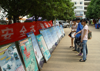 二是举办图片展览。6月8、9日,保卫处在两个学生食堂门口展出了20余块以交通安全知识为内容的展板,展板图文并茂,广泛地宣传了道路交通安全法规、校园道路交通安全管理规定以及交通安全知识;