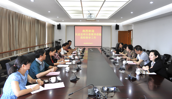 5月16日上午,昆明市政协副主席、民进昆明市委主委汪叶菊,民进昆明市委副调研员王强、秘书长余平、组织处处长李进、宣传处副处长曾毅一行莅临德赢官网,就德赢官网民进总支换届事宜进行工作调研。德赢官网党委副书记李媛芬、统战部部长沈中灿、民进德赢VWIN官方网站总支主委王昆建、副主委博斌、张明霞参加调研会。