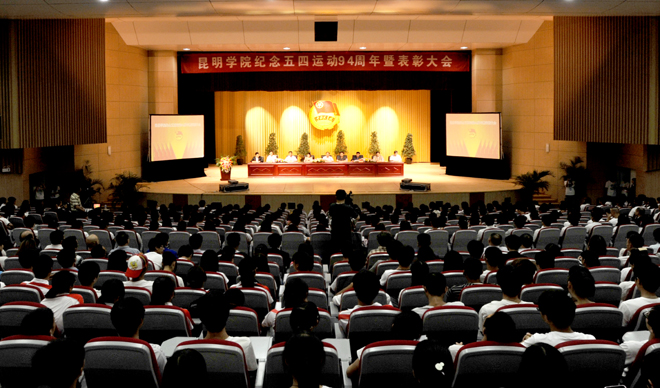 5月17日下午,德赢VWIN官方网站纪念五四运动94周年暨表彰大会在学生会堂隆重召开。学校校长蒋永文,党委副书记孙勇,副校长李翔、罗明东、刘海发、董建华,共青团云南省委学校部部长杨洲,共青团昆明市委书记周乐等领导出席了表彰大会;学校中层干部、各院系团总支书记及受表彰的团员代表共1300余人参加了此次会议。大会由党委副书记孙勇主持。