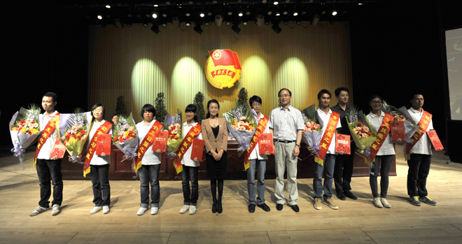 为了鼓励和促进学校青年学生全面发展,增强学生道德品质锤炼和技能特长培养,让学生成为品德好、有特长、肯奉献、能创新的高素质应用型人才,今年学校团委从德赢官网一万余名学生中评选出了9位最闪亮的“青春之星”。他们分别是:全面发展之星——张亮亮、勤奋学习之星——林一婷、自立自强之星——沈丽平、公益奉献之星——武承燕、创新发明之星——张雪涛、创业励志之星——李晓明、素质拓展之星——雷皓、专业技能之星——陶飞艳、社会实践之星——杨义,被授予“青春之星”荣誉称号的同学上台领奖并发表了获奖感言。