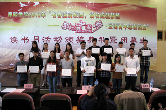 5月23日下午,德赢VWIN官方网站为期一个月的“书香溢满校园 读书成就梦想——我的中国梦•云南青年志在四方”读书月活动圆满结束,颁奖典礼暨闭幕仪式在惟真楼1501举行。