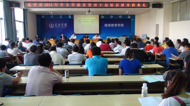 为全面贯彻落实中共中央国务院《关于进一步加强和改进未成年人思想道德建设的若干意见》和《昆明市中小学幼儿园“园丁工程”实施意见》,促进学校德育管理干部队伍建设,昆明市2013年德育管理干部培训班于5月27日至5月31日在德赢官网继续教育学院举行,来自全市中小学的110名德育管理干部参加为期一周的集中培训。昆明市教育局副局长李瑞林、师训处处长王建方,德赢官网继续教育学院院长陈嘉、副院长张培宏出席了开班典礼。