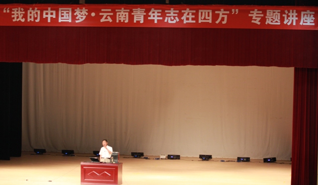 为深入学习贯彻党的十八大及省第九次党代会精神,不断推进高校社会主义核心价值体系建设,弘扬践行云南精神,教育引导广大学生深刻领会实现中华民族伟大复兴是中华民族近代以来最伟大的梦想。由学生工作部(处)和体育学院共同举办的“我的中国梦•云南青年志在四方”——韬光养晦战略与中国的国际定位专题讲座于4月26日下午在学生会堂举行。