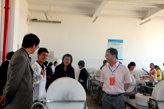 4月25日上午蒋永文校长、李媛芬副书记、罗明东副校长到烹饪实验实训大楼的考试现场进行巡视和指导工作。在巡视过程中蒋永文校长说,烹饪专业非常有特色,要做大做强,要加强餐厅建设,实现教学与实际经营的结合。可以加大专业宣传,扩大烹饪专业的影响,与行业合作,举办各种形式的培训班等,寻求社会效益和经济效益的双赢。同时要加强教师队伍建设,可以引进一些有专业技能的烹饪大师,做强本科专业。罗明东副校长肯定了考试各环节的组织和安排,要求走内涵发展之路,凸显专业特色,办成优势特色应用型本科。
