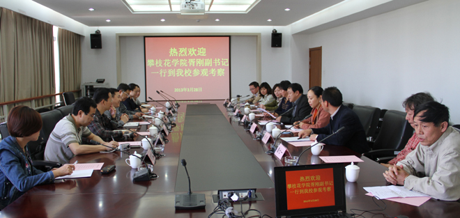 3月28日下午,攀枝花学院党委副书记胥刚率学校党委行政办公室、人事处、发展规划处、经济管理学院、人文社会科学学院、社会科学联合会等部门负责人一行7人到德赢官网考察交流。学校党委副书记孙勇出席,党办、组织部、宣传部、人事部、经济学院、人文学院、昆明科学发展研究院办公室、昆明滇池(湖泊)污染防治合作研究中心办公室等部门负责人参加了交流座谈会。