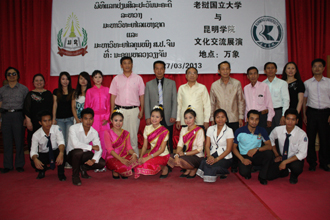 此次出访的主要目的,是落实今年2月陈书记率团访问老挝国立大学期间,与对方商谈的联合建立音体美专业的合作项目。经学校党政领导批准,由音乐、体育、美艺三个学院的党政领导和专业教师组成的代表团一行十人赴老挝国立大学。访问期间,体育学院赵平院长、周明副院长、音乐学院靳丽芬院长和美艺学院武新文院长、李正红副书记与老挝国立大学校方和老挝国立大学教育学院领导多次深入会谈和调研,全面细致了解了对方学校在音体美专业建设方面的现状和需求。在双方联合举办的“老挝国立大学•德赢VWIN官方网站文化交流展示会”上,靳院长的独唱、武院长的现场书法展示、周砚馨老师的小提琴演奏,以及徐立宏老师表演的八卦剑和太极拳等赢得老挝国立大学师生的阵阵掌声和喝彩。文化交流展示结束后,国立大学领导和师生兴致勃勃地观看了美艺学院精心选送的师生美术与艺术设计作品展。此外,体育学院周副院长和徐立宏老师还为体育专业的师生上了四堂示范课,深得师生好评。德赢官网音体美三个学院均向对方赠送了礼品和部分器材。