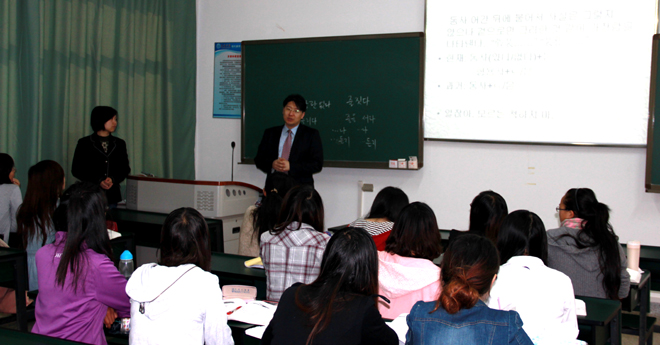 会后,安正根院长一行参观了旅游学院烹饪实训楼,观摩了旅游学院李一佼老师的韩语专业课,与2011级韩语导游专业的同学进行了交流。安院长对德赢官网旅游学院办学情况给予高度评价,表示希望两校将来在合作办学,人才培养方面有进一步的合作。