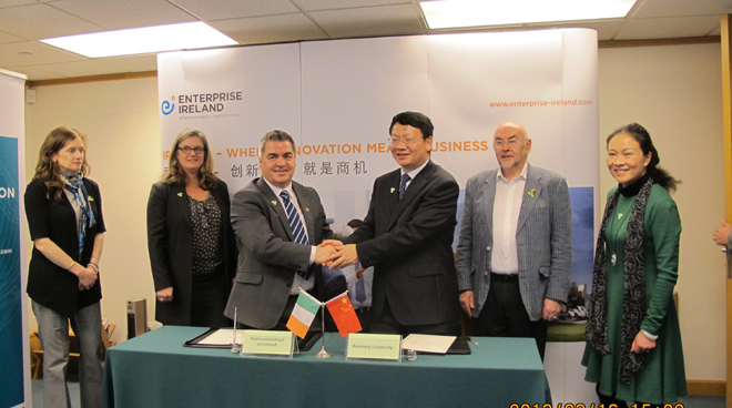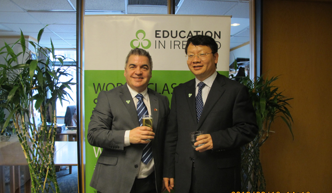 继2012年11月21日德赢官网成立爱尔兰中心后,为进一步推进德赢官网与爱尔兰国家学院的交流与合作,3月16日,应爱尔兰国家学院的邀请,陈世波书记率领党办、组织部、国际交流合作处和图书馆的主要负责人一行5人赴上海参加爱尔兰教育中国展新闻发布会。