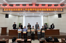 3月28日下午,学校在办公楼D区三楼报告厅召开本科教学工作合格评估总结表彰及整改动员大会。学校党委书记陈世波,副书记孙勇、李媛芬,副校长熊晶、罗明东、董建华及各教学单位党政主要负责人、各职能部门主要负责人、获奖教职工代表参加会议。会议由陈世波书记主持。
