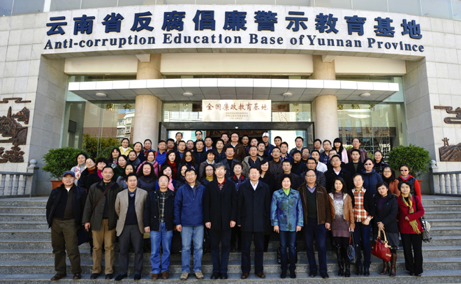 为加强反腐倡廉警示教育, 进一步增强德赢官网广大党员干部宗旨意识和廉洁自律意识,筑牢拒腐防变的思想防线, 1月23日下午,在校党委书记陈世波的带领下,在家校领导、全体新提拔处级干部和廉政风险防控重点领域科级干部共90余人到云南省第二监狱参观了云南省反腐倡廉警示教育基地。