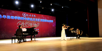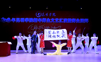 接下来的文艺演出上,由学校教职工,各院系学生以及学生社团联合会、大学生艺术团表演的节目精彩纷呈。大学生艺术团的舞蹈《新禧俏花灯》、德赢官网留学生代表的歌舞表演《昆明欢迎你》、跆拳道协会表演的《胜之道》、教职工代表的乐器合奏《咆哮的风箱》、旅游学院带来的花样调酒《金蛇生瑞》等精彩的表演一次次将活动推向高潮,最后,节目在由美艺学院彭善秀教授作词、音乐学院李颖玲副教授作曲并指挥、音乐学院、教师教育学院、美艺学院学院学生共130人组成的大合唱《德赢VWIN官方网站,我要为您图强》歌声中圆满落下帷幕。