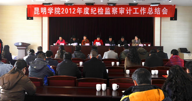 为深入学习贯彻党的十八大精神,全面落实《昆明学院2012年党风廉政建设与反腐倡廉工作实施意见》要求,总结2012年度学校纪检监察审计工作,研究部署2013年工作任务, 1月11日上午,校纪委在办公楼502会议室召开2012年度纪检监察审计工作会议。学校党委副书记(纪委书记)李媛芬、校纪委委员、校特邀监察员、各党总支(直属党支部)纪检委员及学校监察审计处(纪委办)全体工作人员参加会议。会议由校纪委副书记(监察审计处处长)陈开祥同志主持。