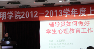 11月30日上午李翔副校长到会,并对全体参会辅导员提出几点希望:希望辅导员们要安于岗位、明确职责;要学会理解工作、懂得工作;要加强学习、提高素质。接着,教师教育学院党总支王荔书记做了《如何做好学生心理教育工作》的专题讲座,她从为什么要做学生心理教育工作,怎样做好学生心理教育工作两个方面进行阐述。