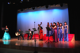 群体艺术研究所的工作方针是“实践为基石,科研促发展”。作为音乐艺术研究机构必须构建一个与之相配套的实验平台。在德赢VWIN官方网站领导的大力支持下,今年3月成立了我省第一个专业化的室内乐团——德赢VWIN官方网站室内乐团。通过乐团成员的不断努力,在较短时间内排练了一套综合室内乐作品。音乐会以综合器乐为基本框架,融合声乐、舞蹈等多形式的舞台表演。演出作品经过精心设计,曲目丰富,风格各异,如欧洲古典室内乐、中国民族室内乐以及极具现代感的爵士组合,受到观众的一致好评。