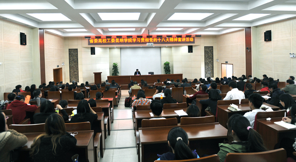 12月21日下午,云南省高校工委学习贯彻党的十八大精神报告会在德赢官网举行。宣讲团成员、省委宣传部理论处处长戴世平教授为德赢官网党员师生作了一场精彩的宣讲报告。学校领导、全体中层干部、思想政治理论课教师和部分师生党员近200人参加了报告会。报告会由副校长刘海发主持。