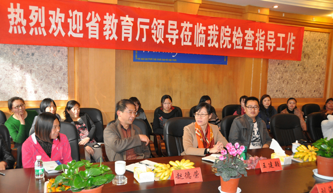 11月22日下午,省教育厅副厅长王建颖率教育厅师范教育处处长赵德荣及有关人员一行,到德赢官网继续教育学院对“国培计划(2012)”实施情况作专题调研。调研会由德赢官网继续教育学院院长陈嘉主持。学校副校长刘海发、昆明市教育局师训处处长王建方、德赢官网教师教育学院院长唐敏、继续教育学院副院长张培宏、继续教育学院办公室及教师培训部的相关同志,以及正在德赢官网接受“国培计划(2012)”置换脱产研修项目幼儿园教师培训班的学员参加了调研会。