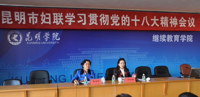 11月22日上午,省妇联党组书记、主席和红梅同志应邀到德赢官网昆师路校区,为昆明市妇联领导干部和昆明经济技术开发区妇女代表素质培训班的学员进行学习贯彻党的十八大精神专题辅导。这既是昆明市妇联学习贯彻党的十八大精神的一次专题会议,又是昆明经济技术开发区妇女代表素质培训班学习党的十八大精神的专题课。