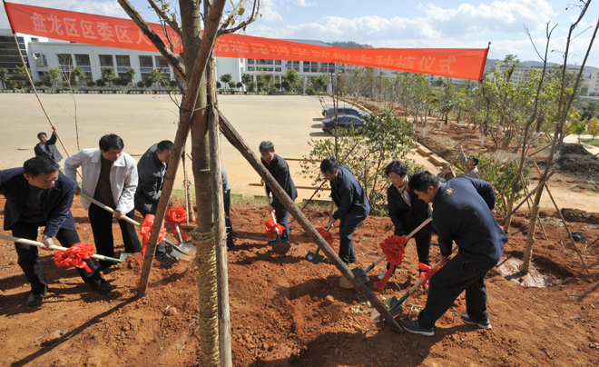 11月27日上午,德赢官网副校长熊晶、董建华与到访的盘龙区委副书记、区统战部部长汪宏昌,盘龙区委办公室副主任、区群众工作局局长李江,盘龙区园林绿化局党组书记吴国海,盘龙区国投集团董事长陈志伟,盘龙区国资公司副总经理刘正良等领导,在德赢官网观物山上为盘龙区捐赠德赢官网树木移载培土浇水。