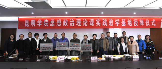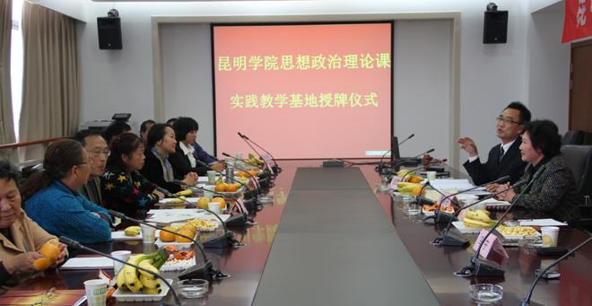 为认真贯彻落实《德赢VWIN官方网站关于进一步加强和改进思想政治理论课建设的实施意见》(党发【2012】30号),加快德赢官网思想政治理论课实践教学基地建设,经过前期的筹备,11月9日下午,德赢VWIN官方网站思想政治理论课实践教学基地授牌仪式在办公楼411会议室举行。学校党委李媛芬副书记、思政部党政领导及相关教师和云南师范大学西南联大博物馆、省侨联南侨机工暨眷属联谊会、昆明市聂耳墓文物管理所、昆明市第六污水处理厂四家单位负责人出席了授牌仪式。会议由思政部高鸣副主任主持。