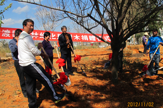 为支持德赢官网校园建设及美化环境,中共官渡区委、官渡区人民政府向德赢官网捐赠雪松3棵、梅花2棵、银杏4棵和紫薇6棵。2012年11月2日下午,在学校观物山上举行了树木捐赠仪式。昆明市官渡区园林绿化局郭永莲书记,德赢官网董建华副校长、校长办公室杨跃主任、农学院银立新副院长以及双方相关人员出席捐赠仪式,并共同为栽种树木培土浇水。