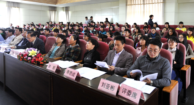 尹相如教授等6位评委按照评分规则,通过认真、公平、公正的现场打分,来自教师教育学院白蕊老师和人文学院非云华老师分别以9.66分和9.54分的高分荣获一等奖,美术与艺术设计学院张晓鸥、机关党总支冯美福、物理系王宇娇、社会管理学院王旭、旅游学院张欣五位老师荣获二等奖。